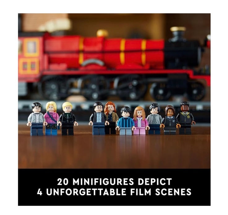 LEGO Harry Potter Hogwarts Express – Collectors' Edition (76405) model steam train set is a spectacular build-and-display project for adult Harry Potter enthusiasts, which will enchant all who see it. The engine features a detailed underside and a lever on the top that causes the train to rock with the motion of a steam train. A tender carries the engine’s supply of coal. The Harry Potter collectable model train set Includes 20 Harry Potter minifigures, grouped into 4 recreations of classic film scenes. The passenger carriage comprises 3 compartments, each depicting one of the scenes: when Harry, Ron and Hermione meet in the series’ first film; when Professor Lupin saves Harry from the Dementor in the third film; and when Luna saves Harry from Draco's spell in the sixth film. The model also depicts Platform 9¾ at King’s Cross Station, where the adult Harry and Ginny wait with their children, Lily, James and Albus, ready for Albus’s first trip aboard the amazing Hogwarts Express.